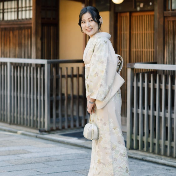 【H-015】訪問着 ベージュ地鹿の子四君子