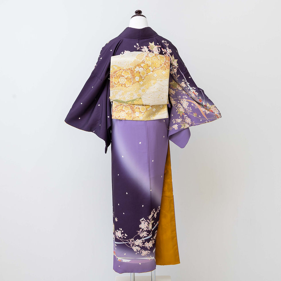 【H-011】訪問着 ブルー&グレー 桜と熨斗